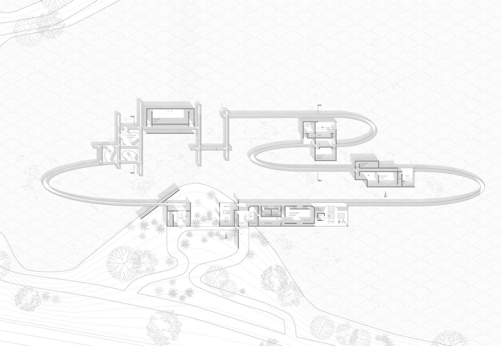 For this design proposal, five gallery spaces spread out from the shore of the Shinobazu Pond are united by a single path to form a new contemporary art gallery in Tokyo’s cultural district. The form of the gallery was generated through reflection upon the art and architecture of Ueno Park’s existing galleries, notably the Le Corbusier and the Age of Purism exhibition presented at the National Museum of Western Art, a UNESCO World Heritage Site designed by the architect himself.