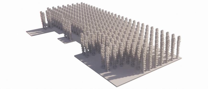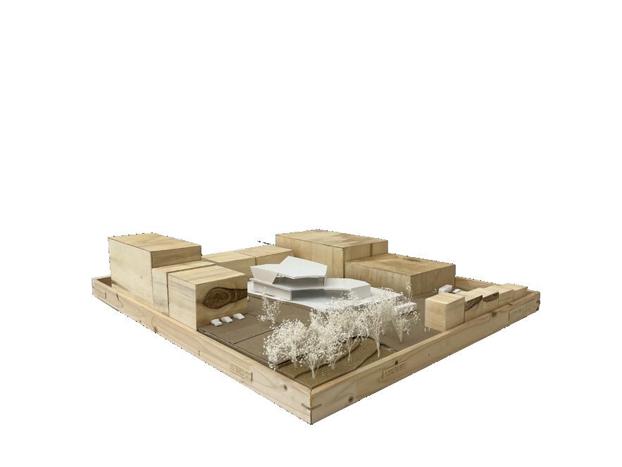 The completed model is designed to mirror the experience of discovering the chosen site. A distinct opening with a sharp pathway symbolizes the journey through the dense arrangement, resembling the trek amid the dead trees. As one progresses, the entrance to the expansive grass field unfolds, with sunlight streaming in to provide a breathtaking view at the summit. The design aims to encapsulate the essence of the journey to the hidden site within its physical form.