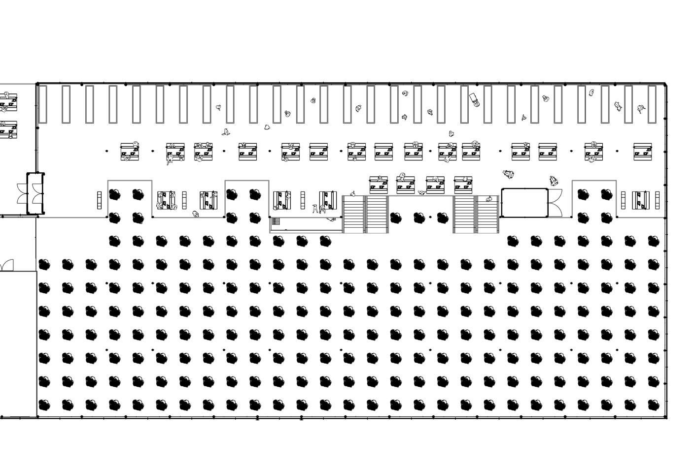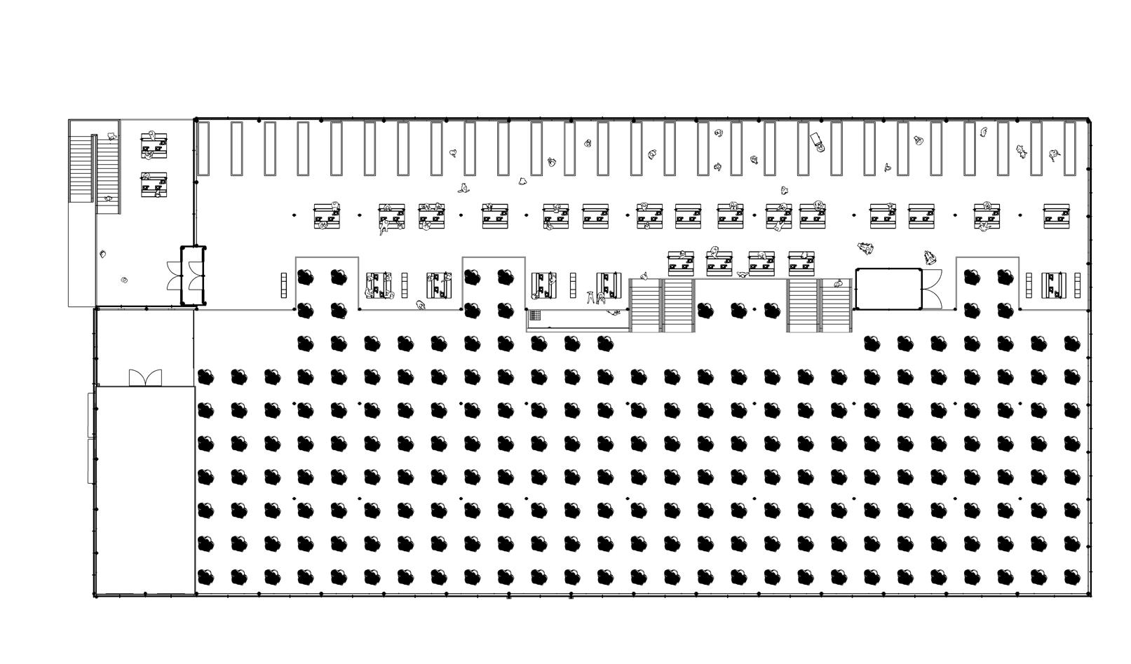 Roof elevations are designed to further distinguish these spaces by accommodating different noise levels.