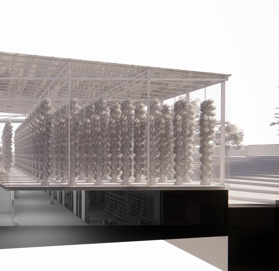 The objective of the Urban Farm project was to seamlessly integrate an environmentally conscious building into an urban landscape, prioritizing a minimal environmental footprint. Mandated to utilize lightweight steel and glass, the structure ingeniously incorporates aeroponic towers for a vertical farming approach. Critical functional zones, such as loading docks, processing rooms, and mechanical spaces, were strategically designated within the building. To maintain a transparent and engaging relationship with the public, the structure boasts a clear facade visible from the street, offering an inviting display of the innovative agricultural practices taking place within.