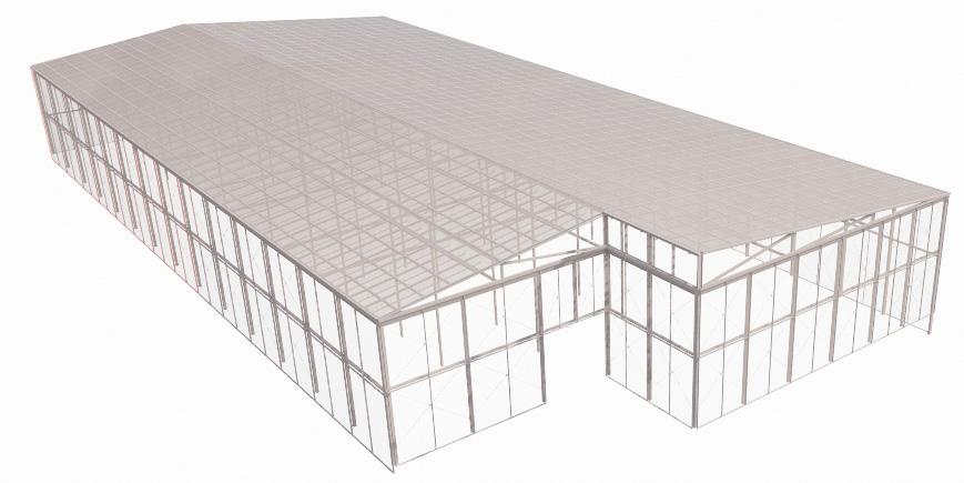 The building features a steel and glass structure with cable bracing, designed to maximize sunlight for the aeroponic towers and enhance photosynthesis. The building’s design was influenced by the University of Kansas’ Architecture Forum, where cable bracing and curtain walls play a defining role in shaping the space.