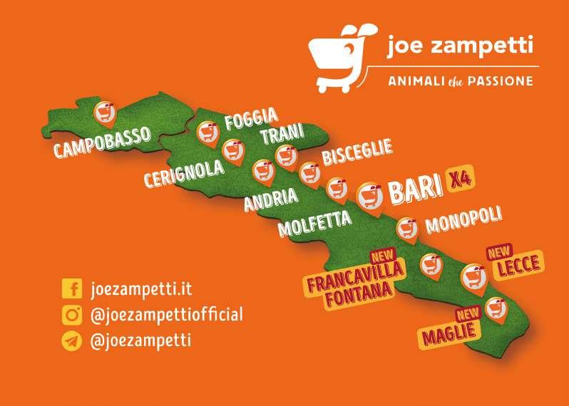 «Presso tutti gli store Joe Zampetti è possibile richiedere la consegna a domicilio. Basta contattare il punto vendita più vicino, ordinare telefonicamente i prodotti e indicare indirizzo, data e orario di consegna. I nostri addetti prepareranno la spesa per consegnarla entro la fascia oraria indicata, per soddisfare palato ed esigenze dei nostri amici pelosi. Per ulteriori approfondimenti o semplicemente per informazioni circa i contatti a cui rivolgersi, è sempre possibile consultare il nostro sito: www.joezampetti.it »