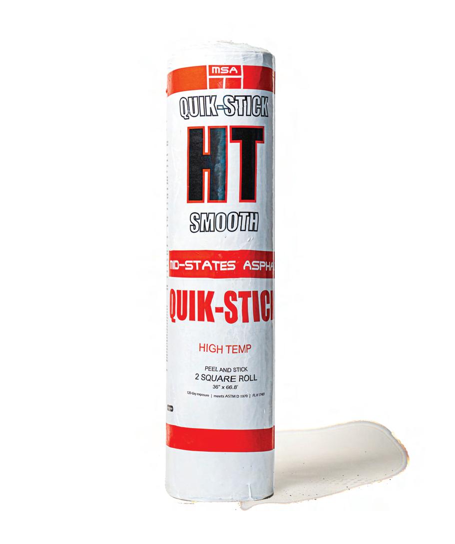 QUIK-Stick Ice & Rain Guard is an SBS-modified, selfadhering membrane reinforced with non-woven fiberglass mat for extraordinary strength and durability. QUIK-Stick IRG is a highly versatile underlayment that provides superior waterproof integrity and is an excellent second wall of defense against wind driven rain and seepage due to ice damming.