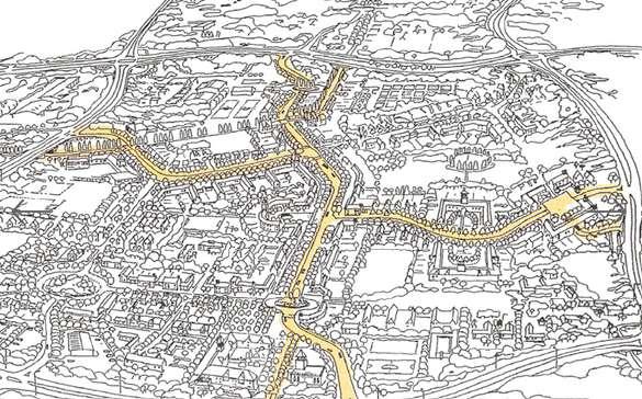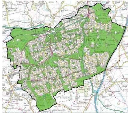 Master Plan de la new town de Harlow, en el que se aprecia la distribución de las características “unidades vecinales” de la Primera Generación.