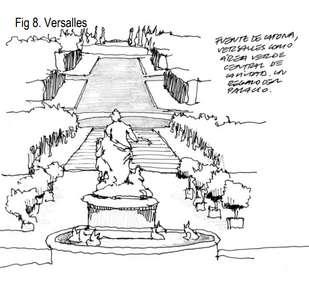 Croquis cuya referencia se encuentra en una fotografía: Saule, Beatrix; (2006) Página 119 “Visitar Versalles”. Editorial Artlys