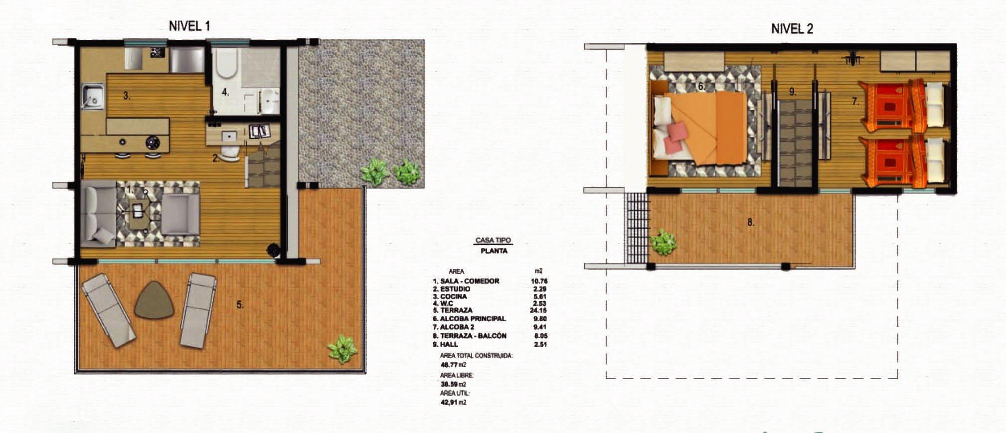 A pocos metros del parque principal de uno de los lugares más visitados por Colombianos y extranjeros. El diseño de las Tiny House es moderno, acogedor y sustentable energeticamente. Cada casa tendrá un área maxima de 84,78 m2 construidos y estará dentro de un lote de terreno de 1.500 m2 vistas hermosas dónde podrás disfrutar de los mas bonitos atardeceres. Estas construcciones y las áreas sociales o públicas, tendrán un sistema de abastecimiento con energía solar, además, se aprovecharán las aguas lluvias con un sistema de almacenamiento y purificadores que reciclarán el líquido.