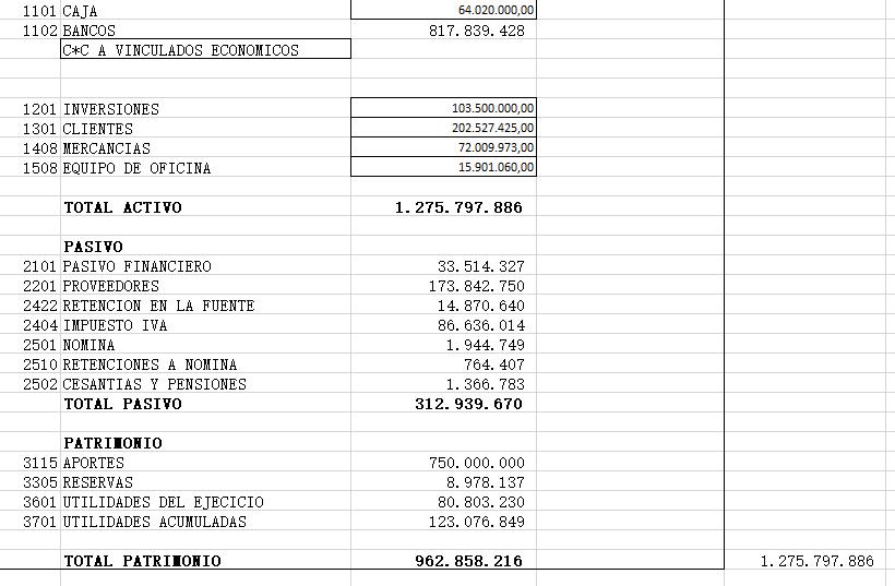 El patrimonio representa los recursos propios de la empresa, incluyendo capital social, reservas, y utilidades acumuladas de ejercicios actuales y anteriores.