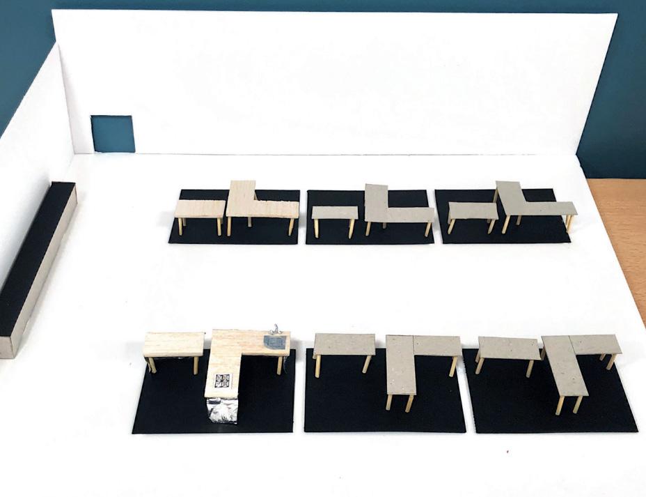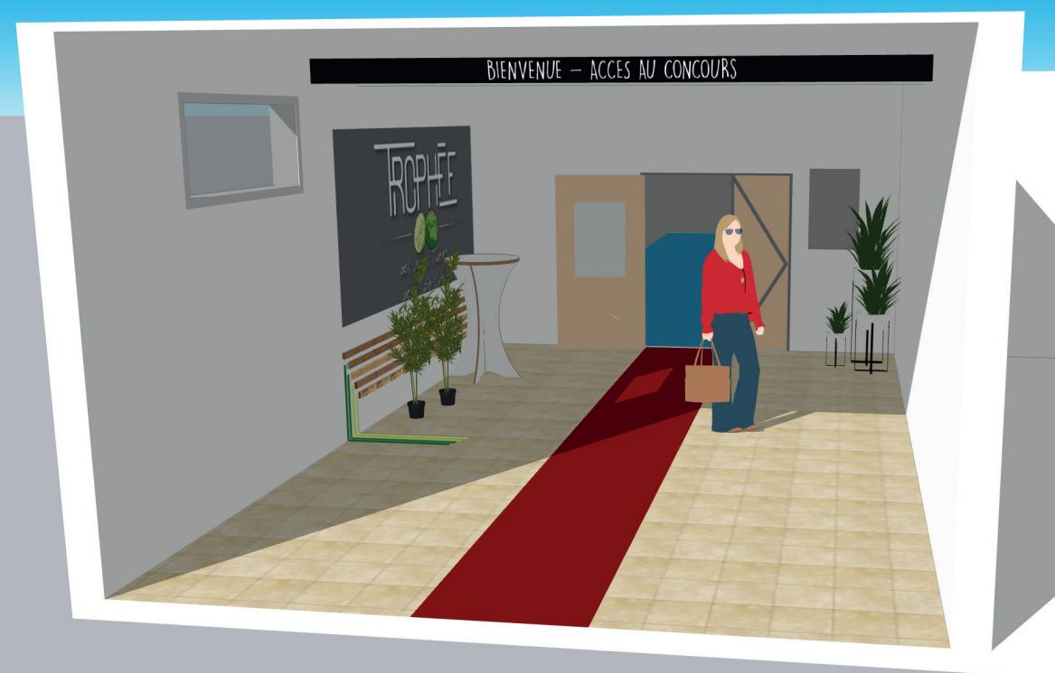 Maquette de l’espace du concours (espaces des candidats et table des jurés).
