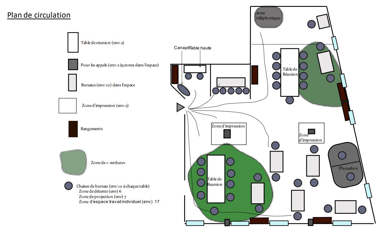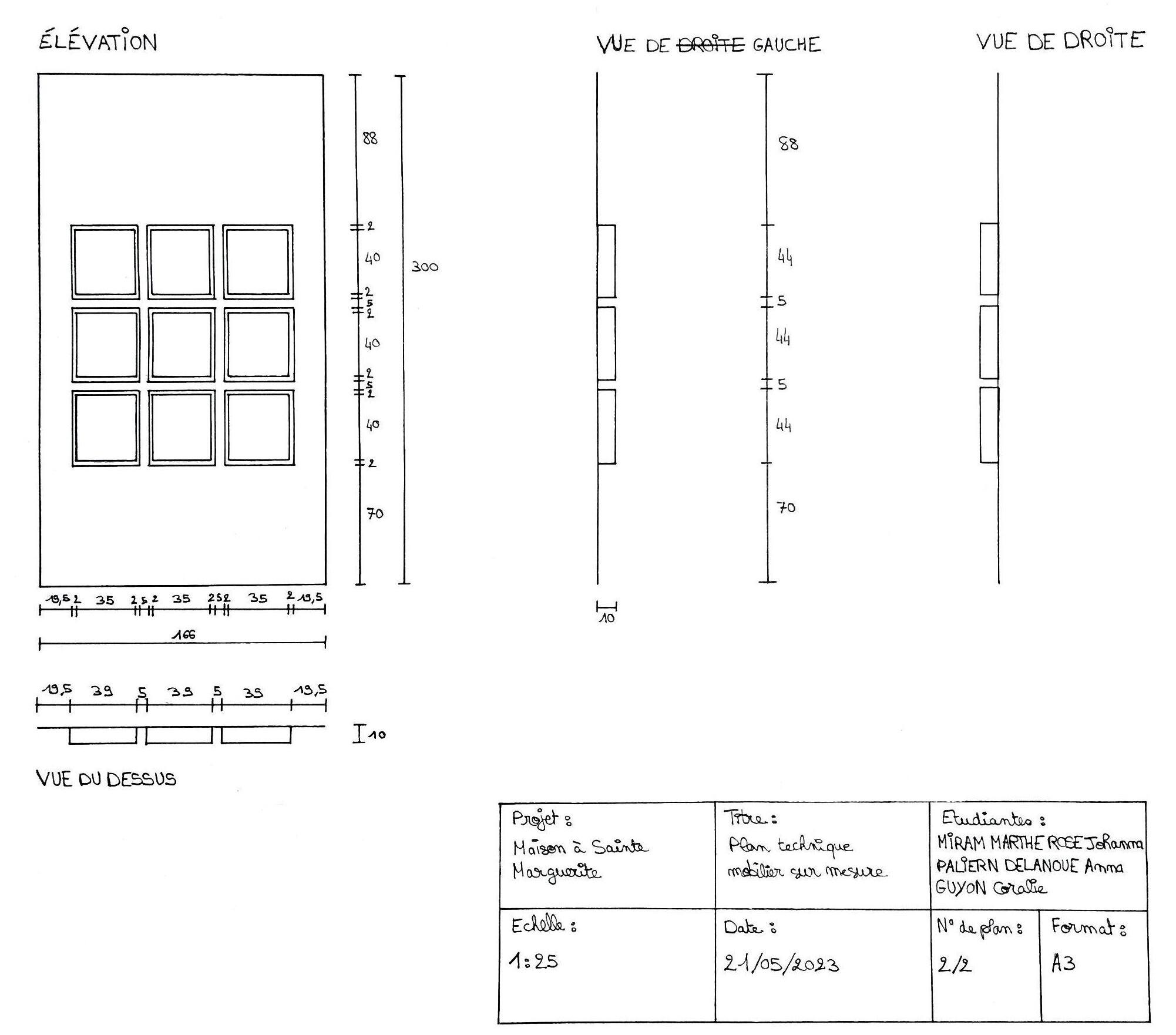 Un dossier A3 montrant le parcours de recherche et de création (croquis de recherches, esquisses, moodboards) et chiffrage détaillé par lots.