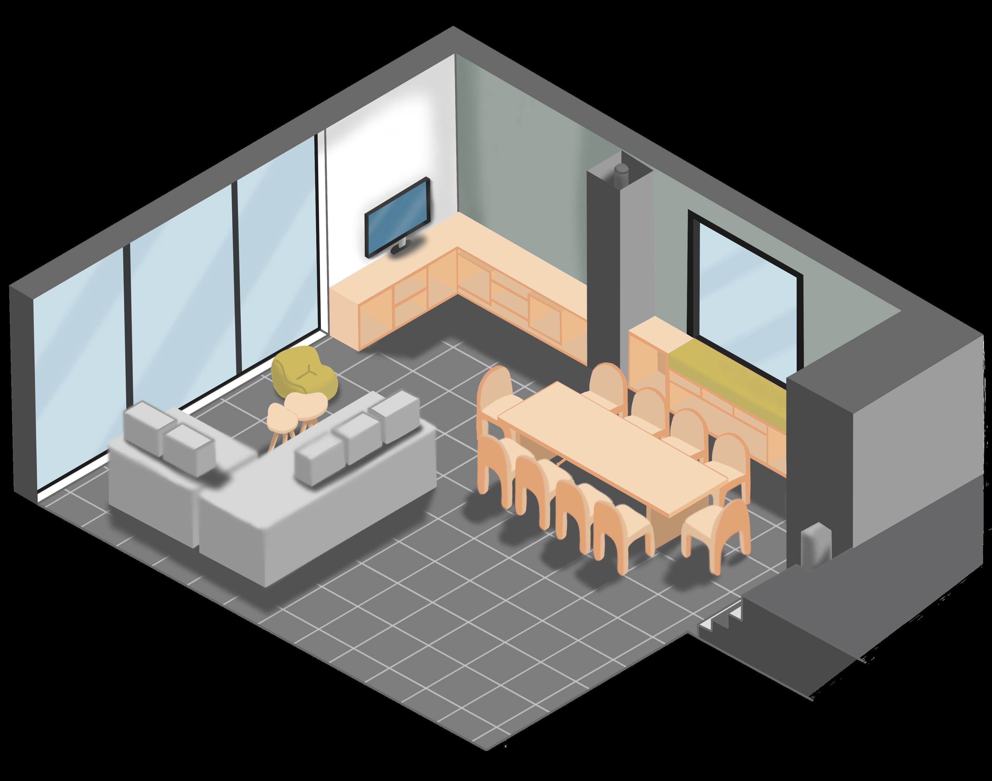 Agencer le logement avec du mobiliers imposés dans chaque espace : une chambre avec un lit double (140x190cm), deux tables de chevet, un radiateur mural, une panderie ; une salle d’eau avec une douche, un lave-linge, un radiateur sèche-serviette, une vasque ; une cuisine avec un réfrigérateur, une plaque de cuisson, un lavevaisselle, un évier, des rangements bas ; un salon avec un fauteuil, un canapé de deux places, une table basse ; une salle à manger avec une table pour quatre personnes, un radiateur mural ; un toilette indépendant.