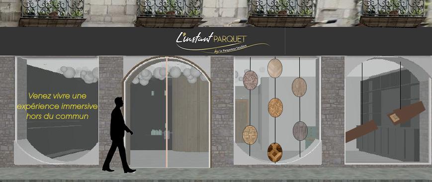 Le showroom “Instant Parquet” est accessible au public avec environ 100 m². Notre projet à pour but de concevoir un espace d’entrée (zone d’accueil), un bureau (zone de travail), un espace de stockage de catalogues des fournisseurs, du mobilier sur mesure pour exposer les différents produits et marque, aménager la façade principale avec ses vitrines, être force de proposition et penser un espace innovant et créatif.