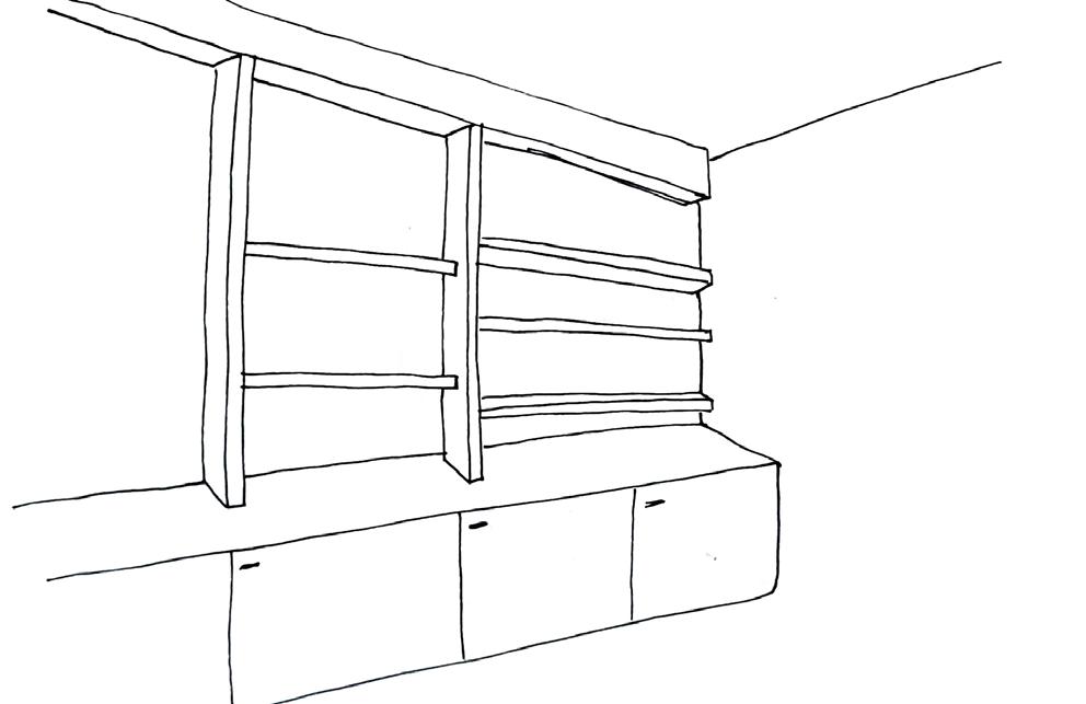 Projet en équipe. Concevoir un meuble sur mesure pour y créer un espace télévision, un espace bibliothèque, un espace lecture sans oublier la cheminée à insert.
