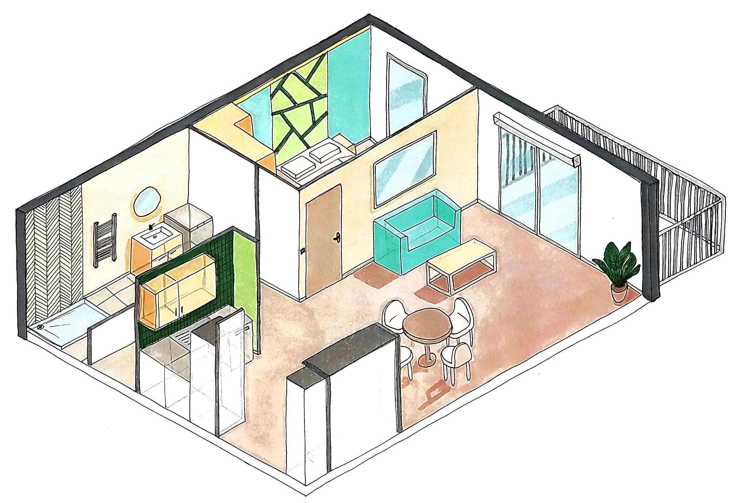 Projet individuel. Aménager un T2 pour un couple de 26 et 28 ans. Thème et ambiance à choisir nous-même.