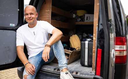 Met de mobiele showroom komt hij op afspraak voorrijden. ‘Voor de klant is het handig dat wij alle tijd hebben om stalen uit te proberen in huis. Ik bespaar er winkelhuur mee en de tijd die ik er in doorbracht tussen klanten.’