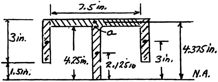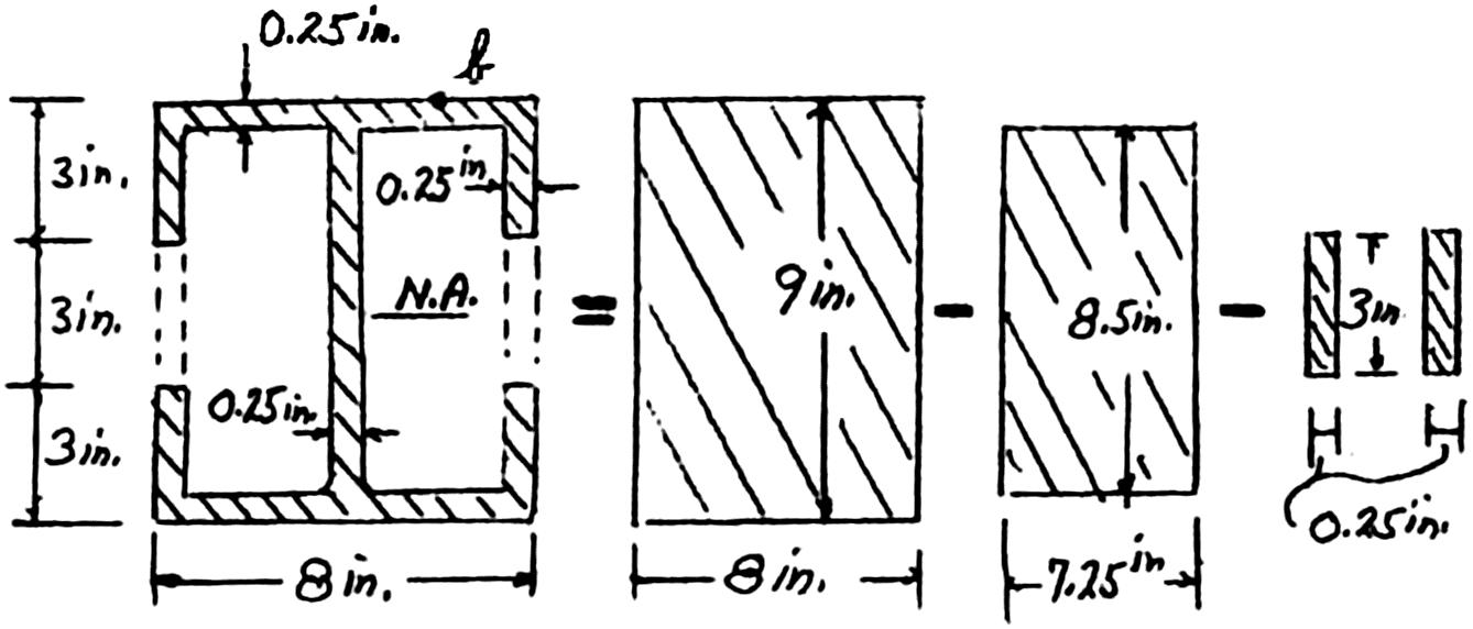 : At neutral axis, thickness 0.25 in 2(3 in.0.25 in.)(3 in.)(7.5 in.)(0.25 in.)(4.375 in.)(4.25 in.)(0.25 in.)(2.125 in.)