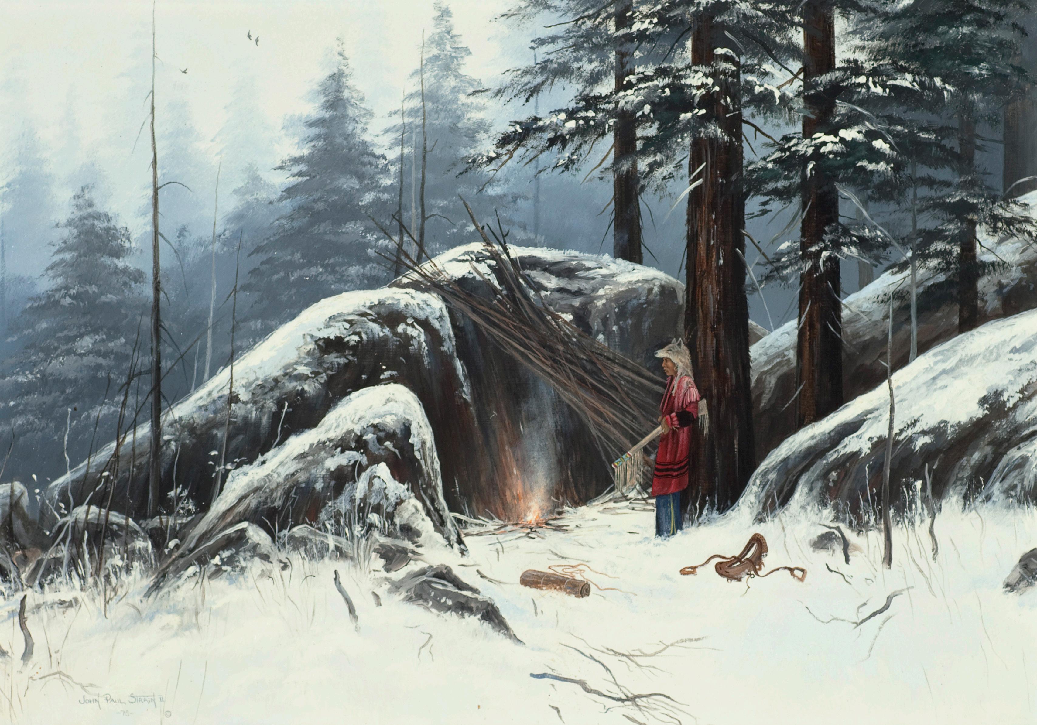 By the time Strain was 21 years old, Trailside Galleries was showing his paintings. For years the subjects of his paintings were Western landscapes, wildlife, and depictions of Indian life. “The style of my work," Strain says, "has been called reminiscent of the romantic landscapes and portrayals of Indian life of Henry Farny and Thomas Moran. I try and attain a certain mood and atmosphere in each of my paintings.”