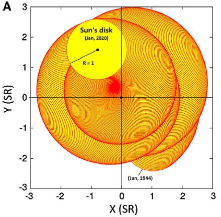 Die überzeugendste Hypothese ist, dass die Gravitation der Planeten (vor allem der schweren Planeten Jupiter, Saturn und Uranus, die zusammen mehr als 90 % der Masse aller Planeten im Sonnensystem auf sich vereinen) eine ständige Bewegung der Sonne und der Druckverhältnisse in ihrem Inneren zur Folge hat. So wie der Mond bei uns für Ebbe und Flut sorgt, haben die Planetenbahnen einen Einfluss auf die Prozesse im Sonneninneren (z. B. die Energiefreisetzung durch die Wasserstoff-Kernfusion) und den Sonnenwind. Die Grafik aus einer 2014 veröffentlichten Arbeit von Prof. Scafetta zeigt die Bewegung der Sonne um den Schwerpunkt des Sonnensystems seit 1944 (https://tinyurl.com/y5mpcdbo).