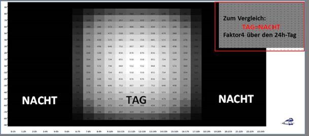 INSIGHT: In the Factor4 averaging, the difference between day and night fades into a uniform gray. This is because any formula can be 'spiced up' by multiplying it by X/X without changing the result. Whether one first multiplies a calculation by any number of seconds and then divides it again by the same number, or whether a sack of rice bursts in China, does not matter at all and changes nothing in the outcome – except that one can brazenly obscure the fact that the solar constant has been averaged not only over the sunlit daytime side, but also over the dark night-time side of the Earth.