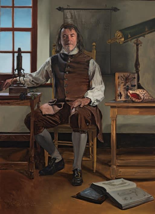 “The telescope and microscope in the portrait are of the specific type Benjamin Franklin had purchased for Marshall while in London.”