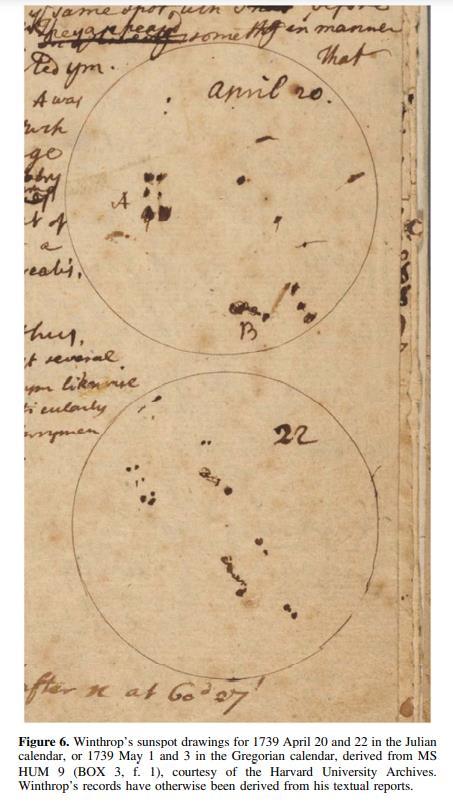 Hope you find Marshall's drawings. Brattle in Boston in 1694, Robie in Boston in 1722, and Winthrop in Cambridge in 1739 made all together about 9-10 total sunspot observations, but no drawings that I can recall. (Doug Hoyt, May 12, 2021)