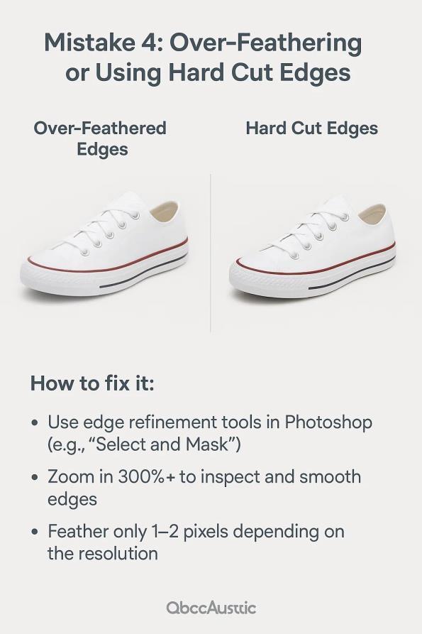 Over-feathered edges make your product look blurry, while harsh cuts make it look like it’s been “pasted” onto the background.