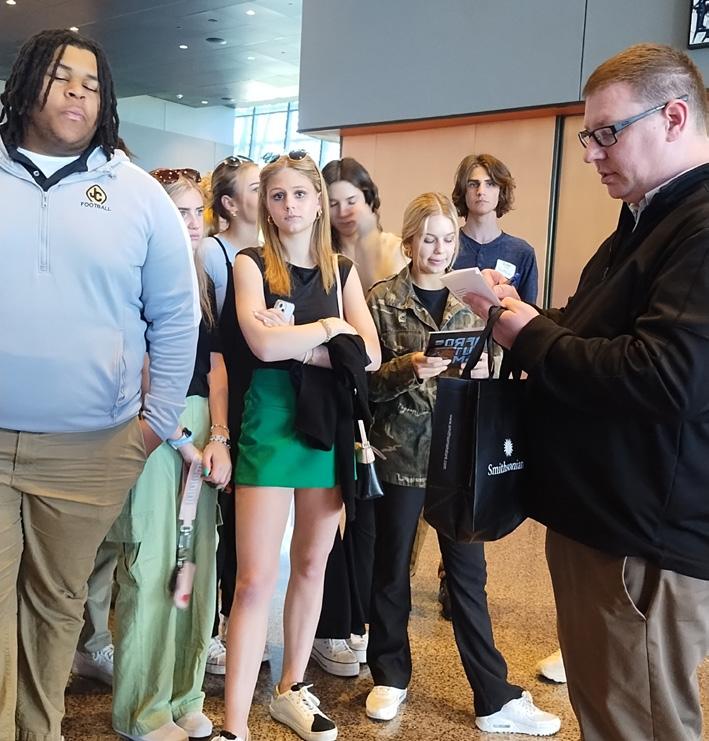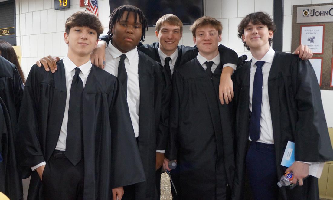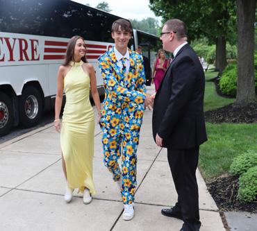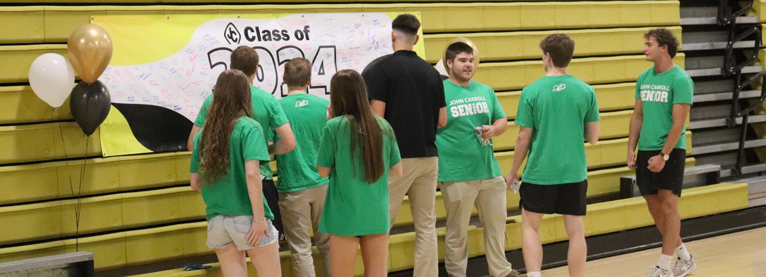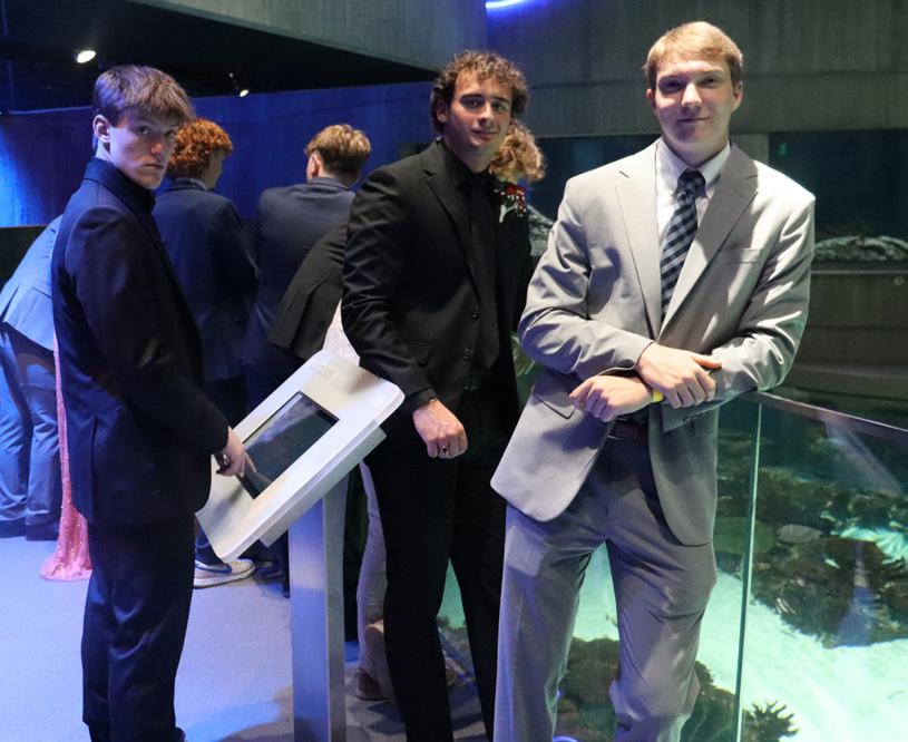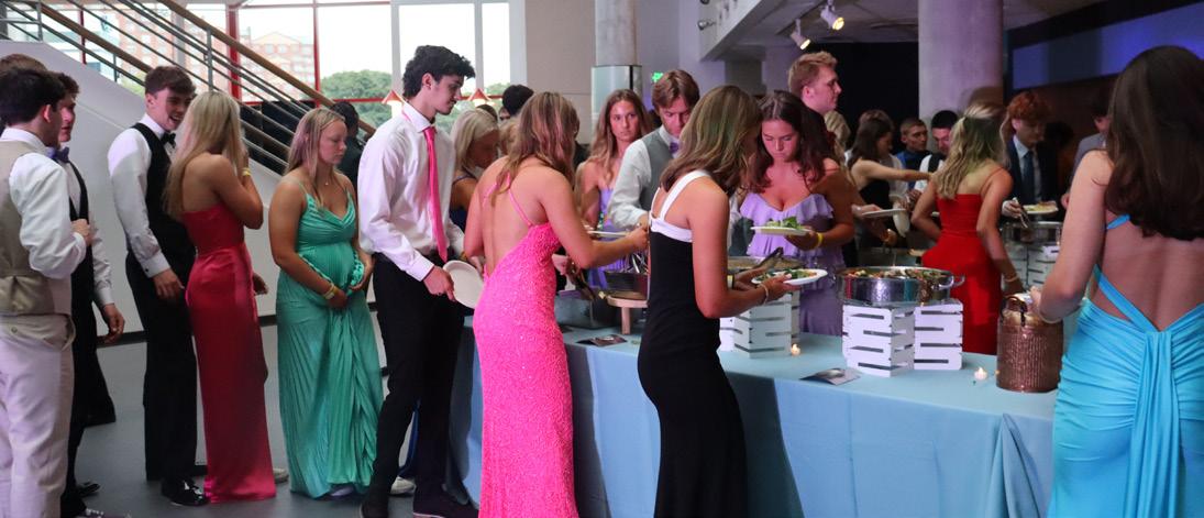 During the late afternoon of Saturday, May 18, the senior class arrived at John Carroll to prepare to leave for the prom. Upon arrival, they went into the school to get bags and coats checked and to get their wristbands. Seniors and their dates then boarded five buses and headed downtown. Despite continued threats of rain, the group remained dry as they arrived at the aquarium. For the first hour, the 250 students and chaperones toured the aquarium before moving to the prom area. Students enjoyed a dinner which included salad, sausage, and pasta. Before re-boarding the buses at 11 pm, students received their prom favors: Class of 2024 socks. Seniors returned to JC at approximately midnight. Class Moderator Larry Hensley commented, “What an unforgettable night we had at the Senior Prom -- a great evening filled with fun, dancing, and cherished memories. The energy, excitement, and being dressed to the nines was a perfect way to celebrate the end of the high school journey.”