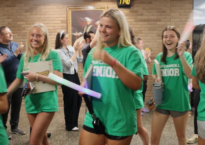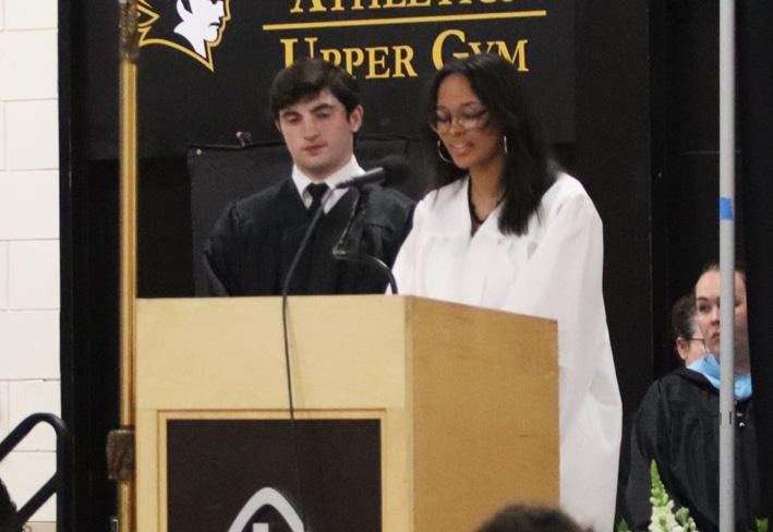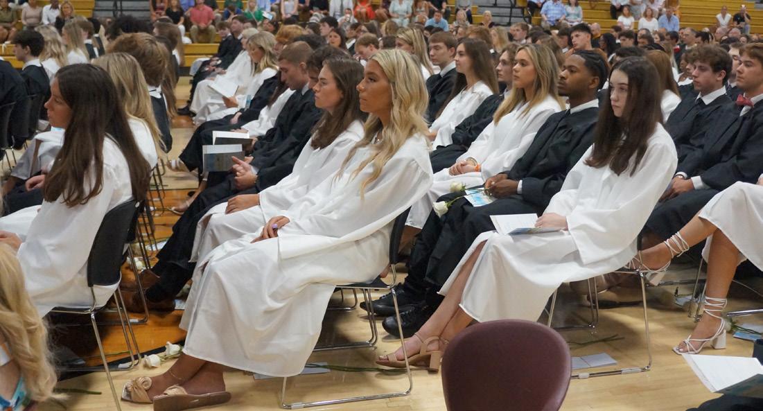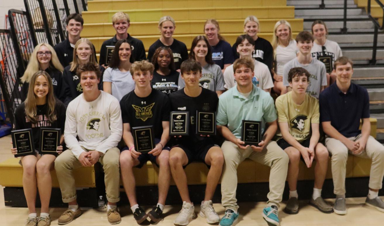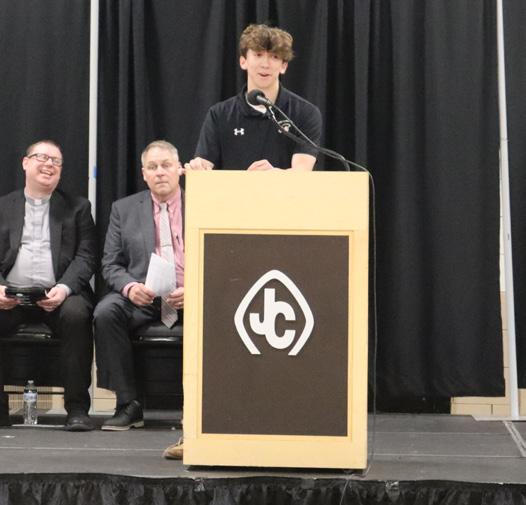 For the final time officially in a John Carroll uniform, members of the Class of 2024, their parents, and their teachers celebrated the achievements of the senior class. Several were recognized with departmental, academic, and service honors. Lauren Gallagher and Al Riska were announced as the Valedictorian and Salutatorian. To conclude the program, Kinley Boyle and Drew Kelly were awarded the Black and Gold award, the highest honor a JC student can receive. Shortly after the ceremony, the seniors remained in the gym for their graduation rehearsal.