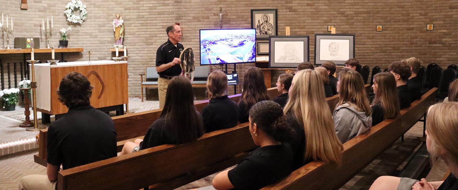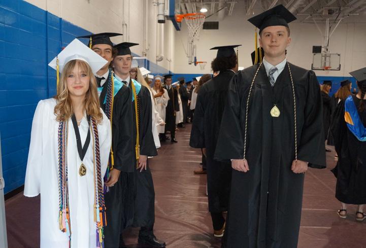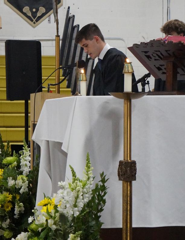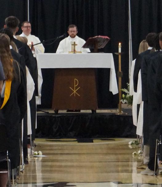 Celebrated by Father Michael Foppiano from St. Mark Church, Fallston, the Class of 2024’s Baccalaureate Mass was held in the Upper Gym due to the stormy forecast. Father Foppiano’s Homily focused on new beginnings as the class is embarking on a new chapter of their lives. At the conclusion of the Mass, students, guests, and teachers moved to the cafeteria and courtyard for refreshments, photos, and fellowship.