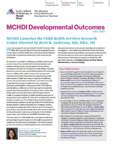 Brett R. Anderson, MD, MBA, MS, joins Mount Sinai as the inaugural Director for the Center for Child Health Services Research in the Mindich Child Health and Development Institute at the Icahn School of Medicine at Mount Sinai. Dr. Anderson is a pediatric cardiologist, Associate Professor in the Departments of Pediatrics, and Population Health and Policy, and an NIH-funded health services and health equity researcher.