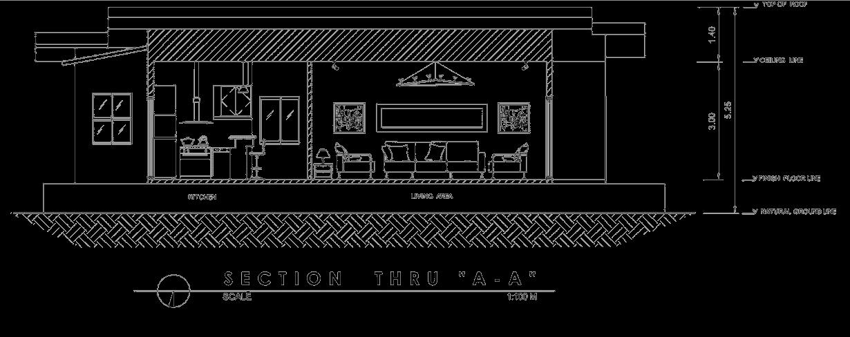 The landscape of countryside makes you feel one with the environment. Its sliding glass doors makes the users see the landscape of typical countryside setting and natural fresh air through large windows. The deck with trellis and plants , will provide a view of nature.