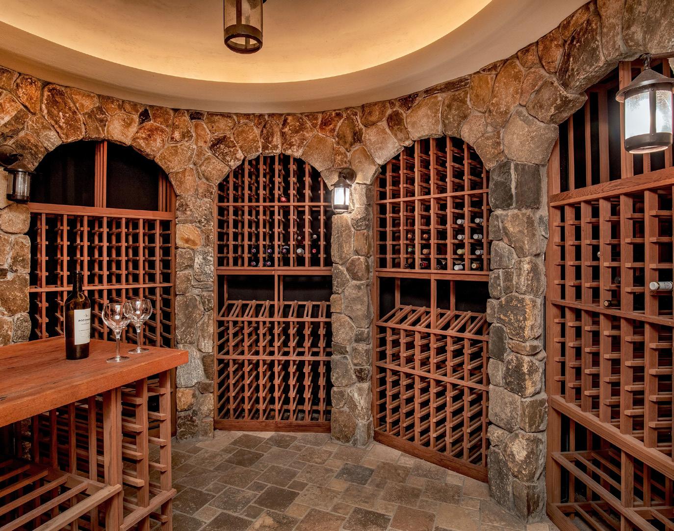 There are 8 massive stone fireplaces located throughout the home, starting in the grand living room, and extending into the formal dining room. Original leaded glass windows surround the property on the main level. Multiple sets of double doors lead from the grand living room to the magnificent grounds, and down to the pool and hot tub area. There are 6 total bedrooms, 8 bathrooms, a fitness center – even a hidden bedroom. The Manor House features formal and informal living areas, as well as multiple decks and terraces around the main floor of the home. There is also a subterranean wine cellar that holds thousands of bottles of wine, and two separate garages for as many as 5 cars.