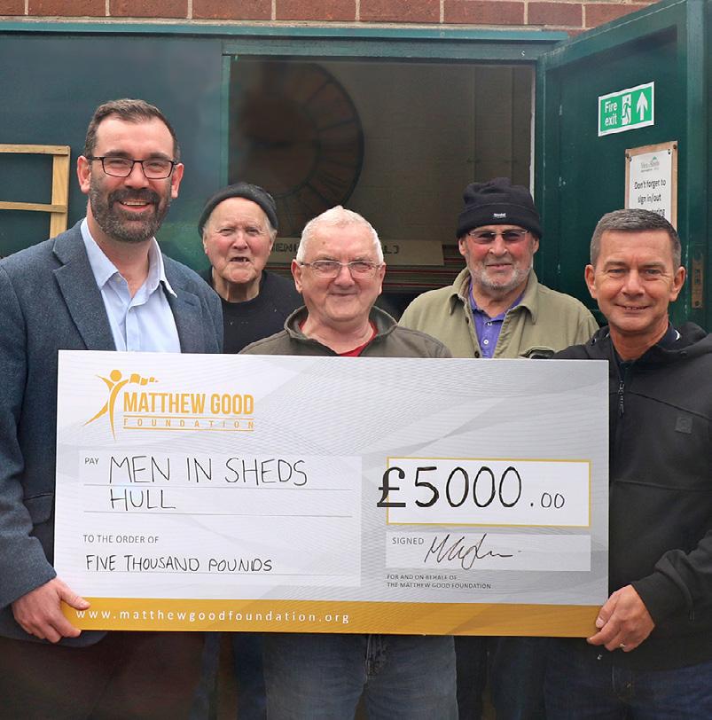 Men in Sheds (Hull) aims to avoid detrimental health impacts of social isolation on older men by providing a safe and inclusive space for members to come together to undertake woodworking projects, offering social interaction and a sense of purpose in the community. As well as selling the products they create, the group regularly help other community organisations in the city. The charity was started in 2014 by Barry Cooper, a retired chef from Hull who had suffered from multiple strokes, after he saw a documentary on TV about a project called Men in Sheds in Australia. In March 2023, they made the Grants for Good shortlist and attracted the most votes from John Good Group employees to secure the highest possible grant of £5,000, which Adam Walsh, CEO of the John Good Group presented to them during one of their sessions (photo left).