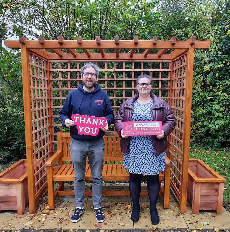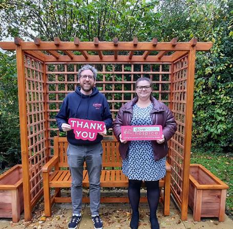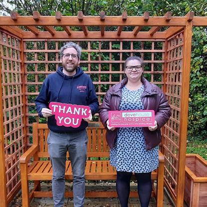 Chloe’s Grandma, Jackie had spent four days at Dove House Hospice before sadly passing away. During this time the hospice had supported not only Jackie, but her family, and Chloe applied for a £500 Champion Grant to express her appreciation to the charity. In order to maximise the impact of the grant, the Matthew Good Foundation offered instead to fund the purchase of a memorial bench for the hospice garden. A bespoke bench, arbour and planters (see photo left) were purchased from another local charity, Turning Corners, a small charity in Hull helping people recovering from mental health conditions to ease their way back into the community through woodworking workshops, where they create furniture by tender, and also for their factory shop.