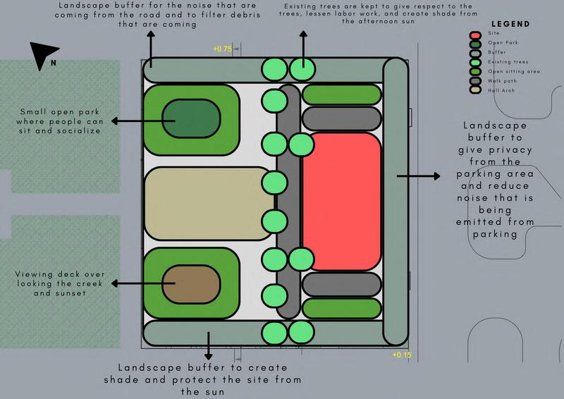 T h e d e s i g n ’ s g o a l i s t o h e l p p e o p l e r e c o n n e c t w i t h t h e m s e l v e s , w h e r e p e o p l e c a n r e s t a n d t a k e n a p s , w h e r e p e o p l e w o u l d g e t t h e c h a n c e t o s l o w d o w n , b r e a t h e a l i t t l e , a n d d i s c o n n e c t . T h i s i s t h e p l a c e w h e r e p e o p l e c a n w i n d d o w n a n d l o s e t h e m s e l v e s i n t h e t a s k a t h a n d . D e s i g n i n g t h e s i t e , t h e m a i n t h e m e o f i t w a s t o m a k e i t z e n , d e r i v e d f r o m t h e S a n s k r i t d h y a n a , m e a n i n g m e d i t a t i o n M a i n t a i n i n g t h e t h e m e o f t h e d e s i g n , z e n l e d w i t h a l o t o f d e c i s i o n s t h a t w e r e g o i n g t o b e m a d e , a s i t p r i o r i t i z e s p e o p l e ’ s w e l l - b e i n g . T h i s l e d t o t h e m a t e r i a l s u s e d w h i c h a r e n e u t r a l a n d e a r t h y t o n e s , a m b i a n c e s e t , a n d o v e r a l l s p a t i a l e x p e r i e n c e . T h i s i s w h e r e p e o p l e c a n e n j o y t h e c r e e k b r e e z e , h e a r t h e w a t e r f l o w i n g , a n d w a t c h t h e s u n s e t s l o w l y i n t o t h e h o r i z o n , a s i t s l o w l y g e t s d a r k e r , p e o p l e g e t t i r e d , a n d p e o p l e c a n l o u n g e o r e v e n s t a y i n f o r t h e n i g h t , a s t h i s b r i n g s t h e m i n t o p e a c e , r e l a x e d , a n d n o t w o r r i e d a b o u t t h i n g s t h a t c a n n o t b e c h a n g e d . T h e a r e a w h e r e p e o p l e c a n b e o n e w i t h n a t u r e , w i t h p l a n t s , w i t h t h e i r i n t u i t i v e n e s s r a t h e r t h a n t h e i r c o n s c i o u s m i n d B e i n g c a l m i n c r e a s e s r e s t o r a t i v e s l e e p i m p r o v e s p h y s i c a l a n d m e n t a l h e a l t h a n d b o o s t s t h e i m m u n e s y s t e m a s h a v i n g t h i s r e f r e s h i n g r e t r e a t i s t h e p l a c e w h e r e p e o p l e w o u l d w i n d d o w n b e f o r e g o i n g b a c k t o t h a t f a s t l a n e o n c e a g a i n .