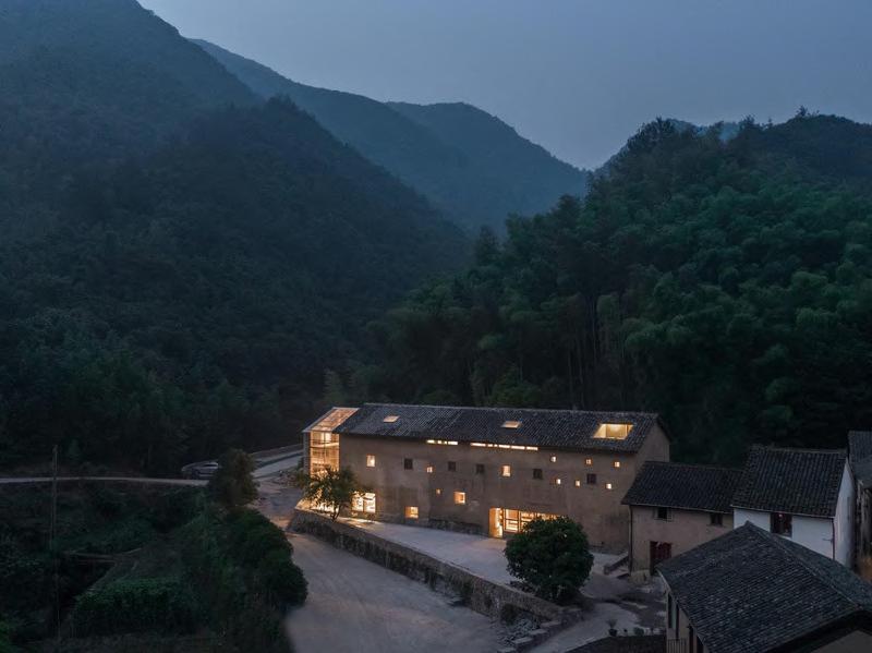 Capsu e Hotel and Bookstore in V l age Q ng ongwu s ocated n the deep forests of Tong u n Zhe ang prov nce was an o d house of wood struc ure and mud wa s cove ng an area of 232 sqm and 7 2 meters Ate er tao+c redes gned and egenerated th s anc ent bu d ng by nsert ng a capsule ho e that can accommodate 20 people