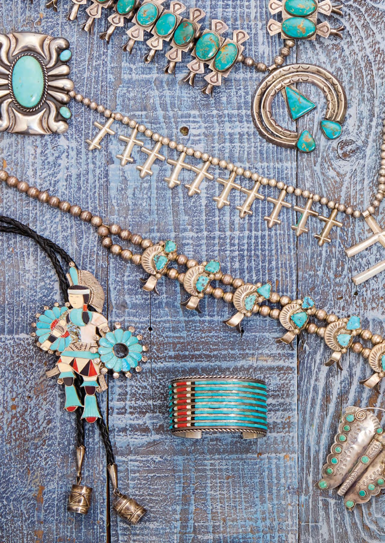 With six row set needle point turquoise and wire banding motifs