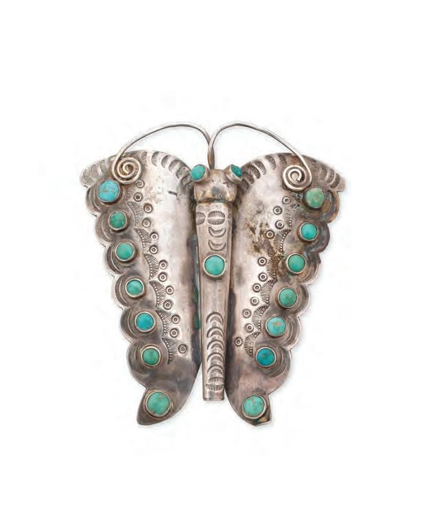 A Southwest style sterling silver and turquoise butterfly pendant/brooch Mid-20th century