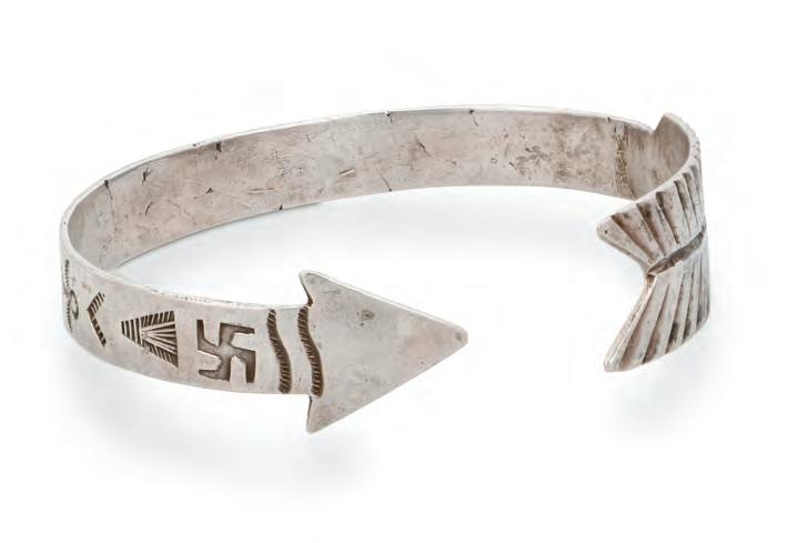 An early narrow cuff with point and feather shaped terminals and stamp work including whirling logs and other geometric motifs
