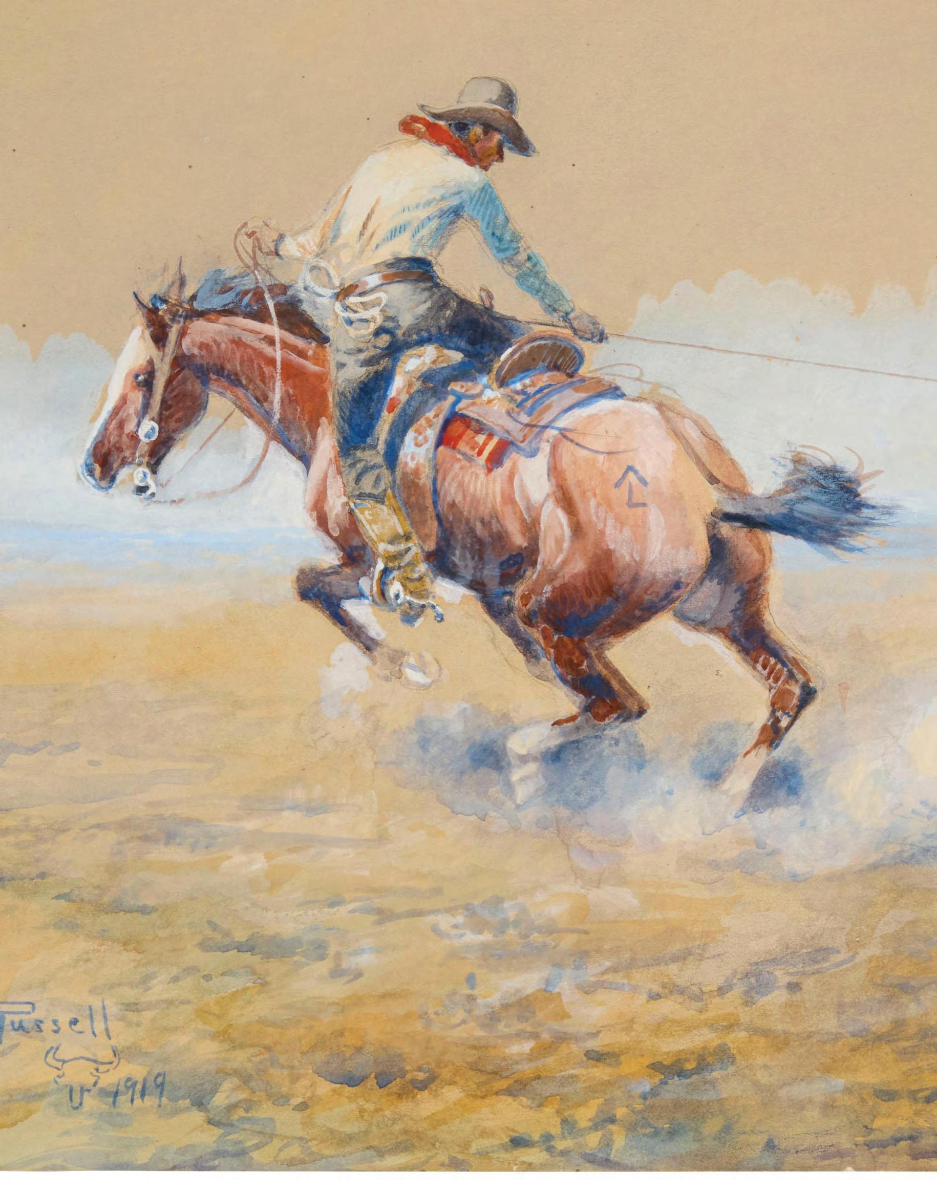 Sold at John Moran Auctioneers: Charles Marion Russell (1864-1926), “At the End of the Rope,” 1919 Price Realized: $225,000