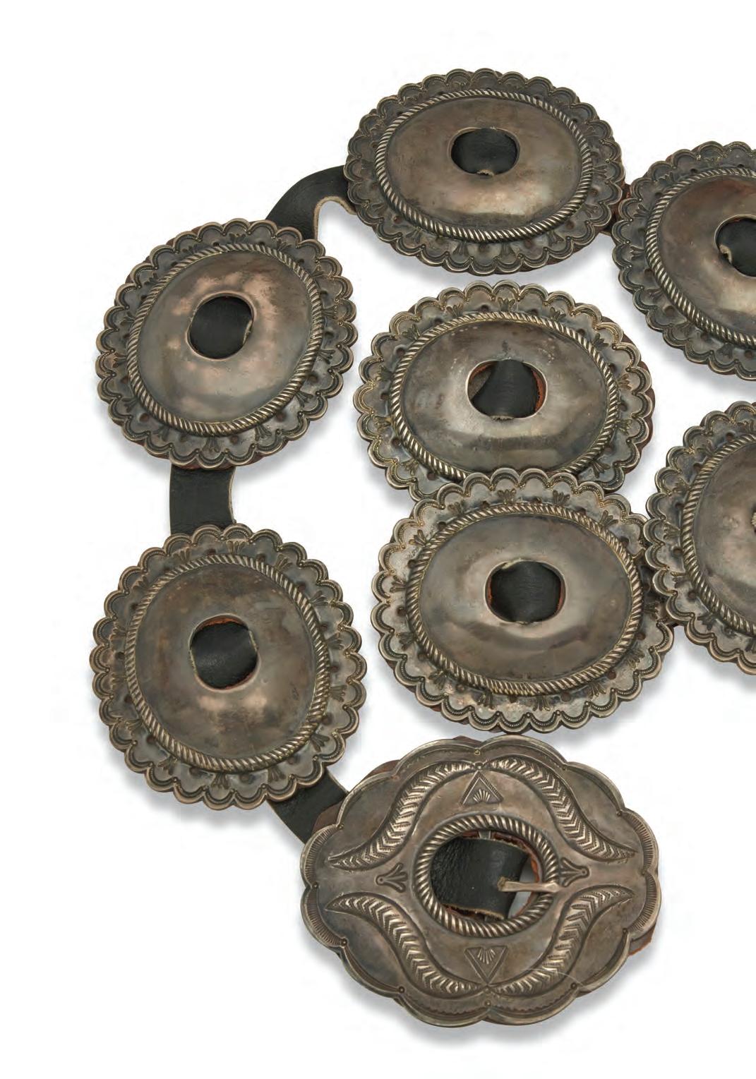 A large cast sterling silver stylized concho-style belt buckle with elaborate silver overlay