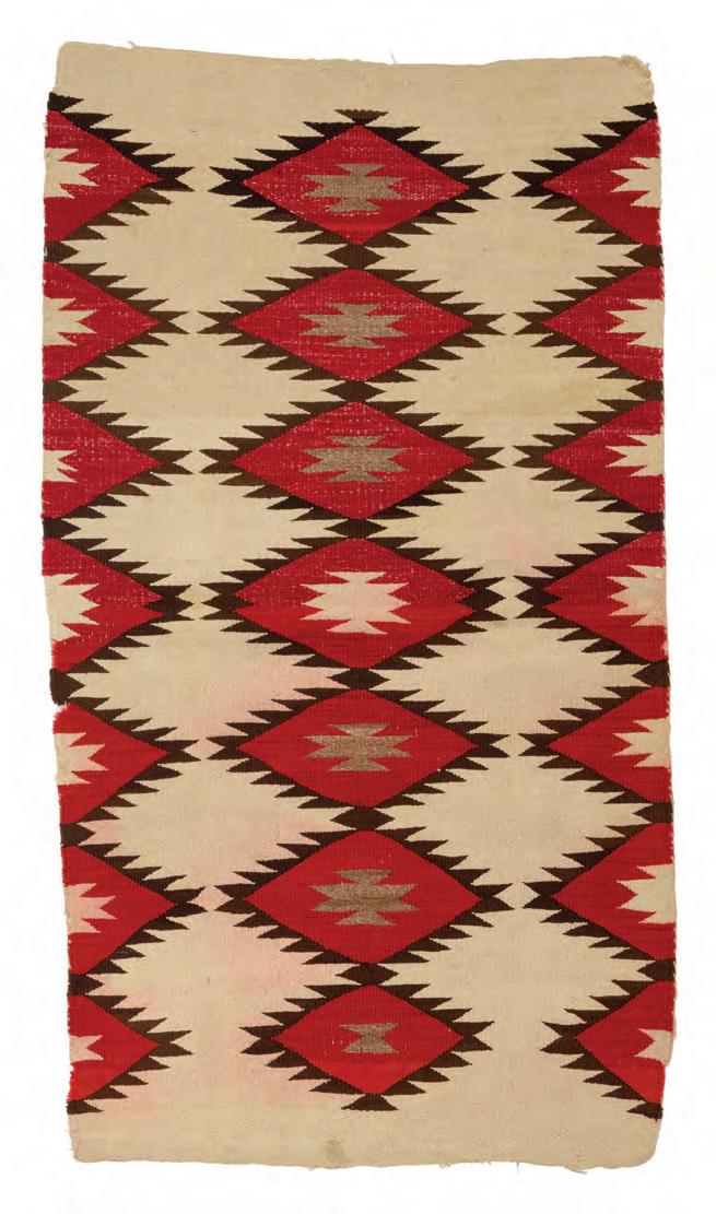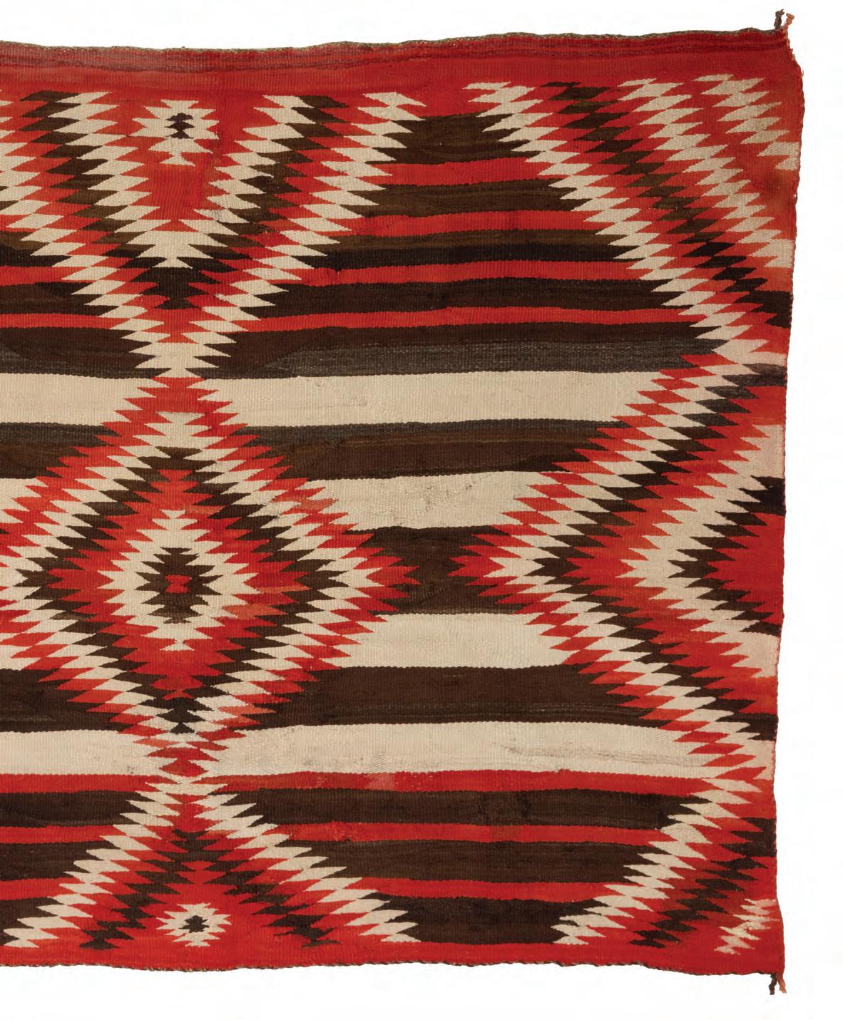 Late 19th/early 20th century, Diné Woven in red, cream, and dark brown wool, with alternating bands and serrated diamonds