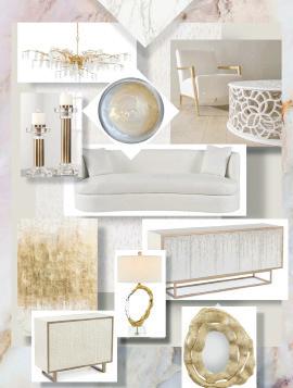 Designer at Safavieh, has several of her impressionist paintings included in John-Richard’s expansive line of gallery elements, with additional works planned for the future. She shared her design board for a client’s formal living room, demonstrating how she incorporated John-Richard throughout the project. This project showcases John-Richard to the fullest, incorporating furniture, lighting, mirrors, accessories, and artwork to create a cohesive and personalized vision.