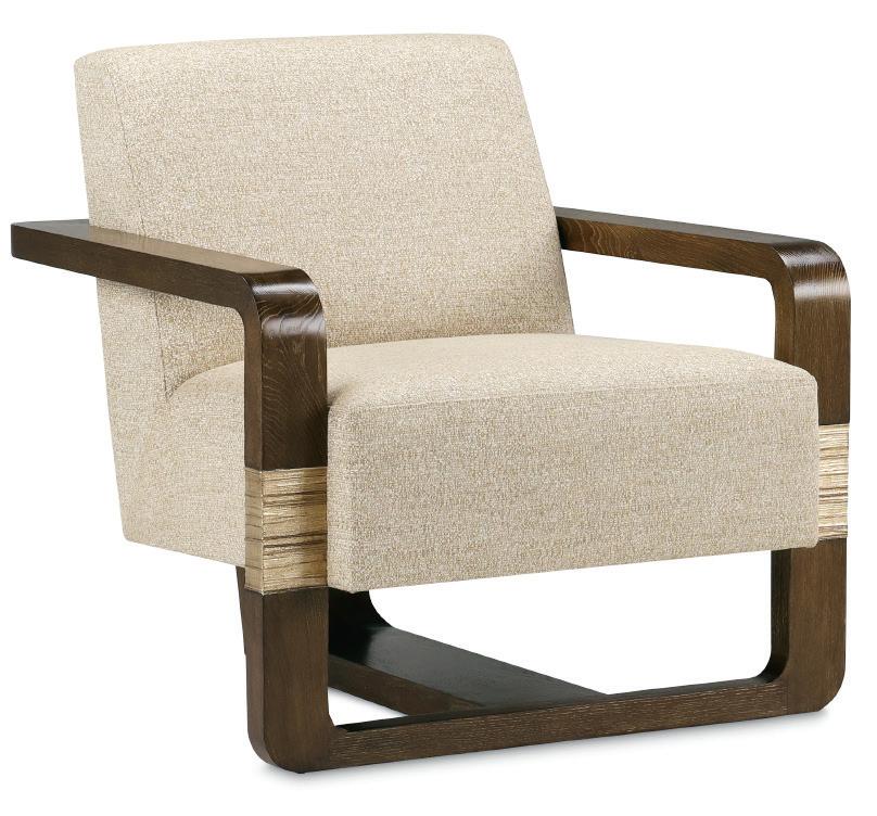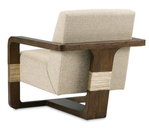 AMF-1854V377-3040 (Aquila Armchair - 3040): The Aquila Armchair features a refined oak wood frame in a Shire finish, with a graceful base that sweeps down from the curved arms to create a sense of weightless balance Lavish upholstery in Naima Flax 3040 fabric complements the deep wooden tones and textural leg accents in Valyrian Gold. 33” H x 33” W x 33.5” D