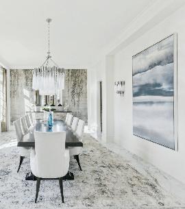 In other projects, accessories can define the mood and introduce color within a neutral backdrop. Susan Semmelmann, Founder and Lead Designer of Semmelmann Interiors, used JohnRichard accents to bring personality and sophistication to a dining room and adjacent living area, balancing ethereality with structure while highlighting her client’s personality.