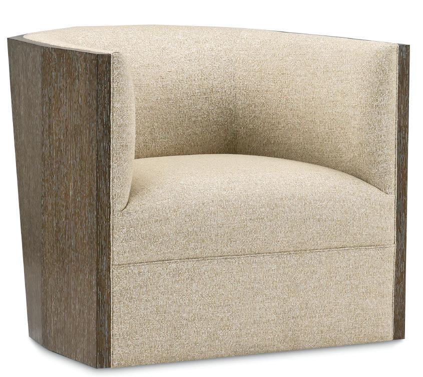 AMF-1820V362-3040 (Sequoia Swivel Chair - 3040): The Sequoia Swivel Chair features a faceted acacia wood frame surfaced in quarter oak veneer with a rich Fallstaff finish. Its generously proportioned seat aligns seamlessly with tall, sculpted arms and is upholstered in lavish Naima Flax 3040 fabric, offering an elegant harmony of style and comfort. The chair includes a smooth return swivel for effortless functionality. 30” H x 34’ W x 33” D