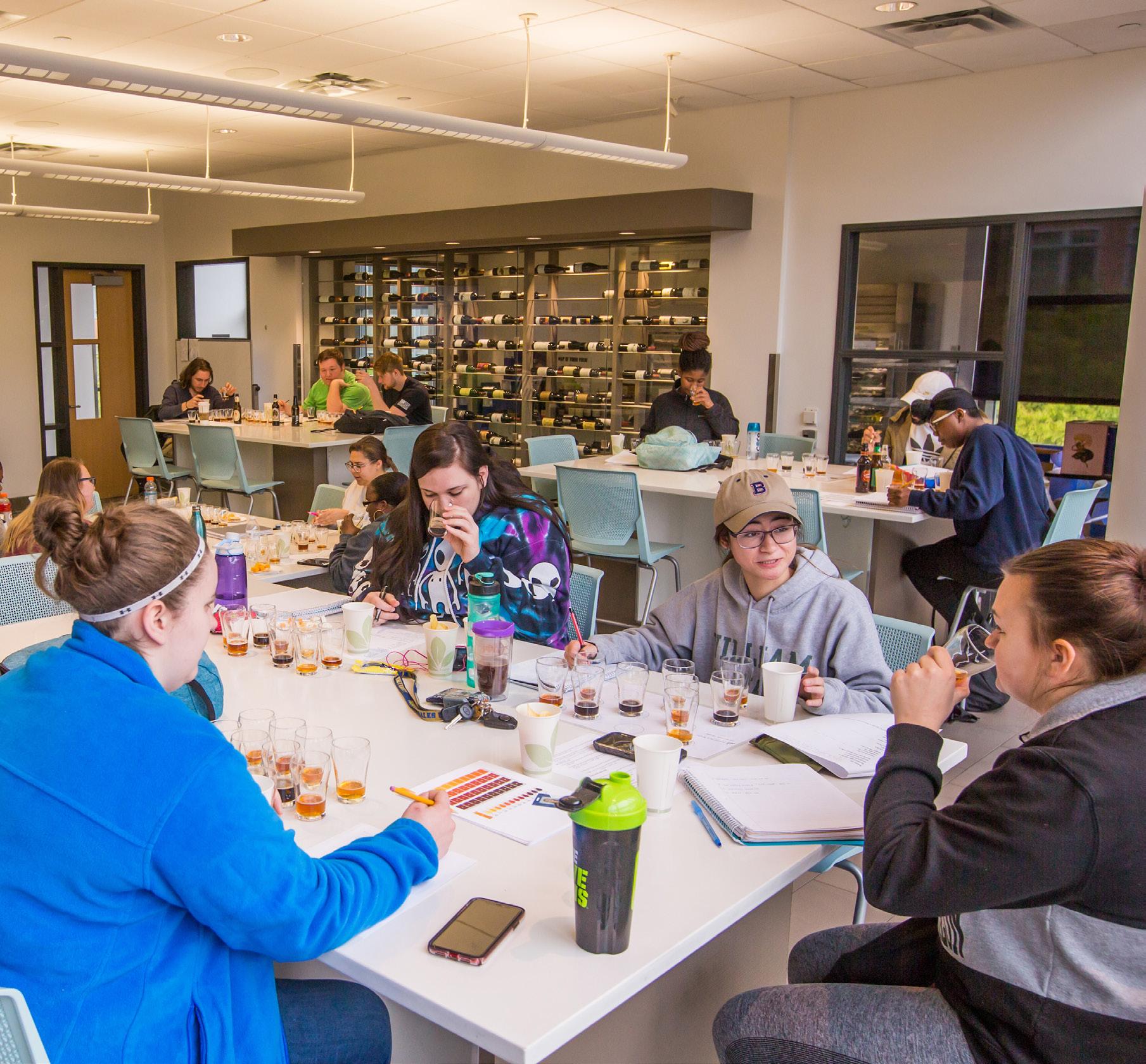 Students conduct tastings of a variety of beverages in the Sensory Beverage Lab.