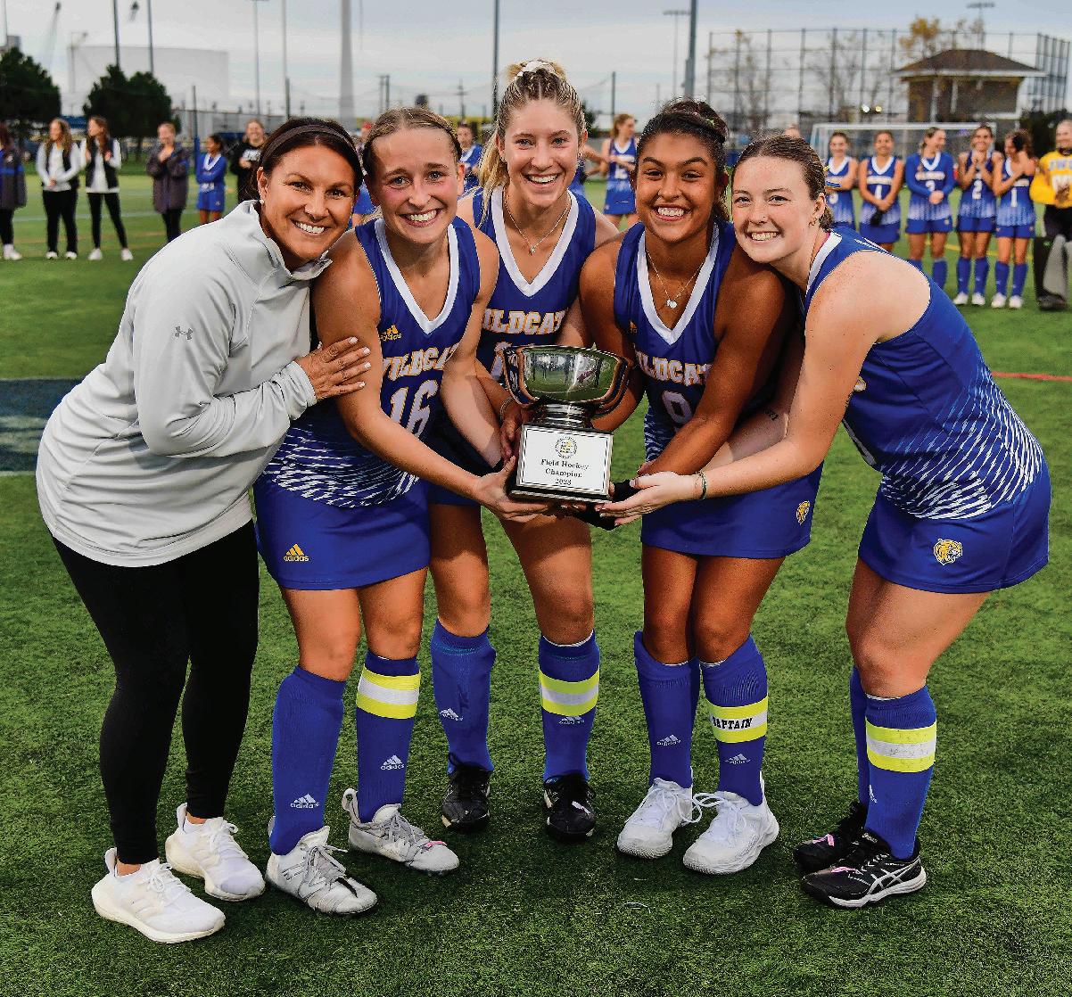 It was the success enjoyed by some other athletic programs at Johnson & Wales University’s Providence Campus that convinced Lisa Lopes. This was the place to pursue her first opportunity as a field hockey head coach. The Wildcats were less than a decade from their debut in 2013–14 and still had plenty of room to grow. The department machinery was in place — the right mix of staff and players could unlock something special. Her evaluation has proven true. Lopes and JWU celebrated a third straight Great Northeast Athletic Conference title this fall, and each led to a corresponding NCAA Tournament berth. The Wildcats have knocked Saint Joseph’s (Maine) off the league pedestal and now stand alone as its power program. “I didn’t have the success to talk about in the recruiting process,” Lopes says. “I was just selling the future. I was selling what I wanted us to be in the future.”