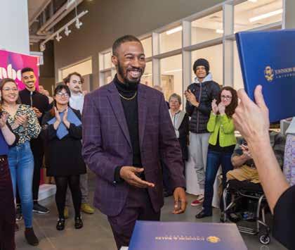During Commencement exercises for the Charlotte Campus, Haley Chaykowski-Jewett ’22 framed this time as making her classmates stronger: “Today, we celebrate our drive, power and dedication that helped us overcome the barriers we faced during what were supposed to be the ‘best years of our lives ’… The next time we feel like we’re never going to get through something, we need to remember all that we’ve fought through and all that we have fought for … We are a part of a generation that is changing the world.”
