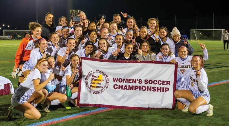 Four years of playing volleyball at the University of South Carolina in the late 1980s extended to a successful coaching career. Since 2014, Somera has coached JWU’s volleyball team, one of its marquee programs, and now serves as assistant athletic director. Her Wildcats captured a sixth consecutive Great Northeast Athletic Conference (GNAC) championship last fall, and they didn’t celebrate alone.