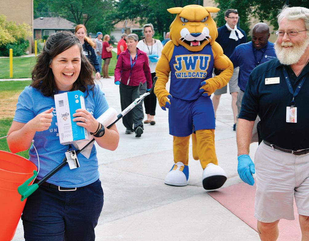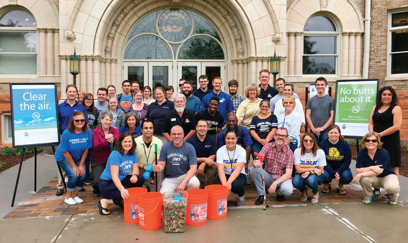 In spite of grey and overcast skies, Denver students, staff, alumni and even Wildcat Willie gathered outside Centennial Hall July 1 to celebrate the universitywide transition to a 100 percent tobacco-free campus. (North Miami and Charlotte campuses enacted the policy last year; Providence and Denver followed this year.) The “No Butts About It” event also provided an opportunity to clean up cigarette butts and litter throughout campus.